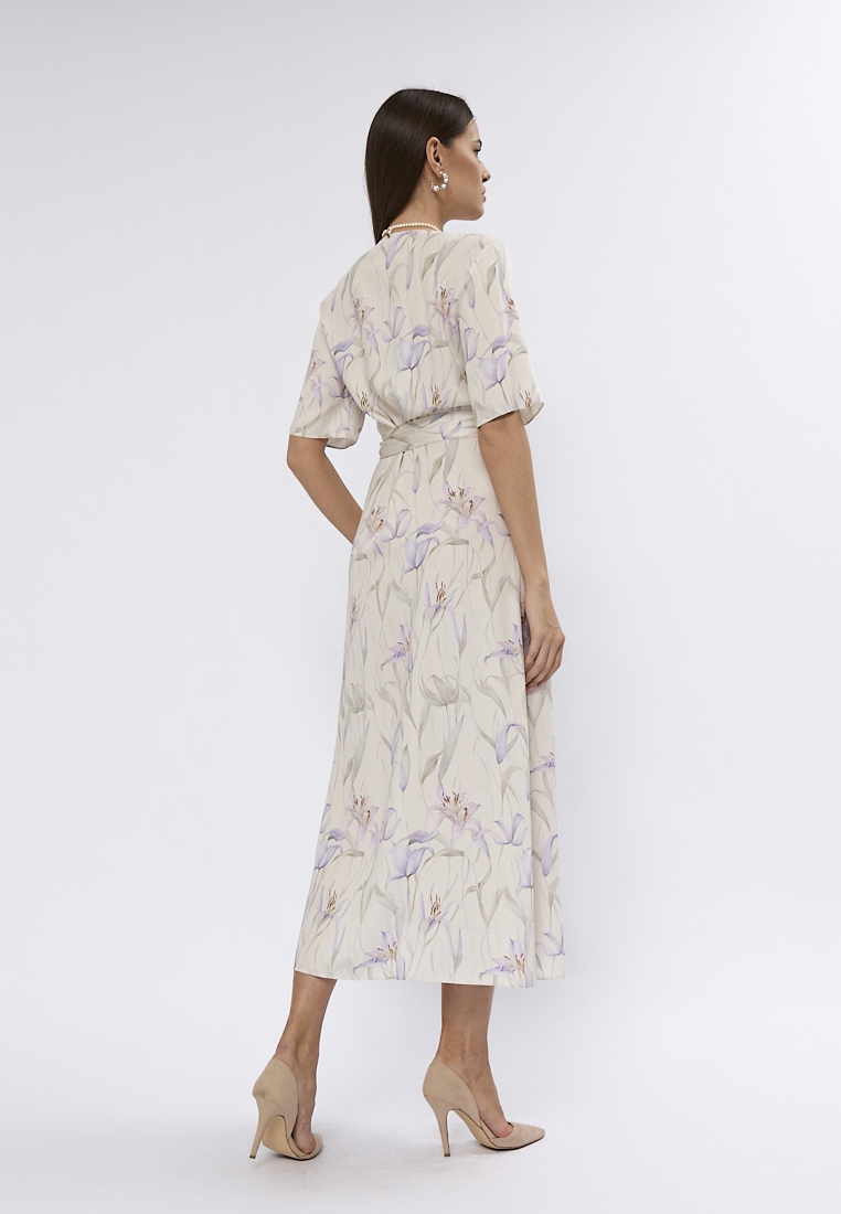 Нежный цветочный принт добавляет образу романтичности и весенней свежести, делая платье универсальным выбором как для повседневных прогулок, так и для торжественных мероприятий или свиданий. Добавьте в свой образ нотки парижского шика вместе с платьем OLIVIA.